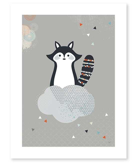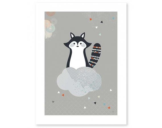 Affisch från LilipinsoRolig bild med fin tvättbjörn som sitter på ett moln - perfekt att dekorera barnrummet med. En väggdekoration som både kan hängas på väggen eller stå på en hylla och bidra till stämningen.