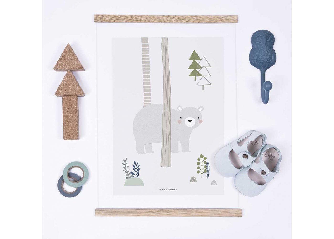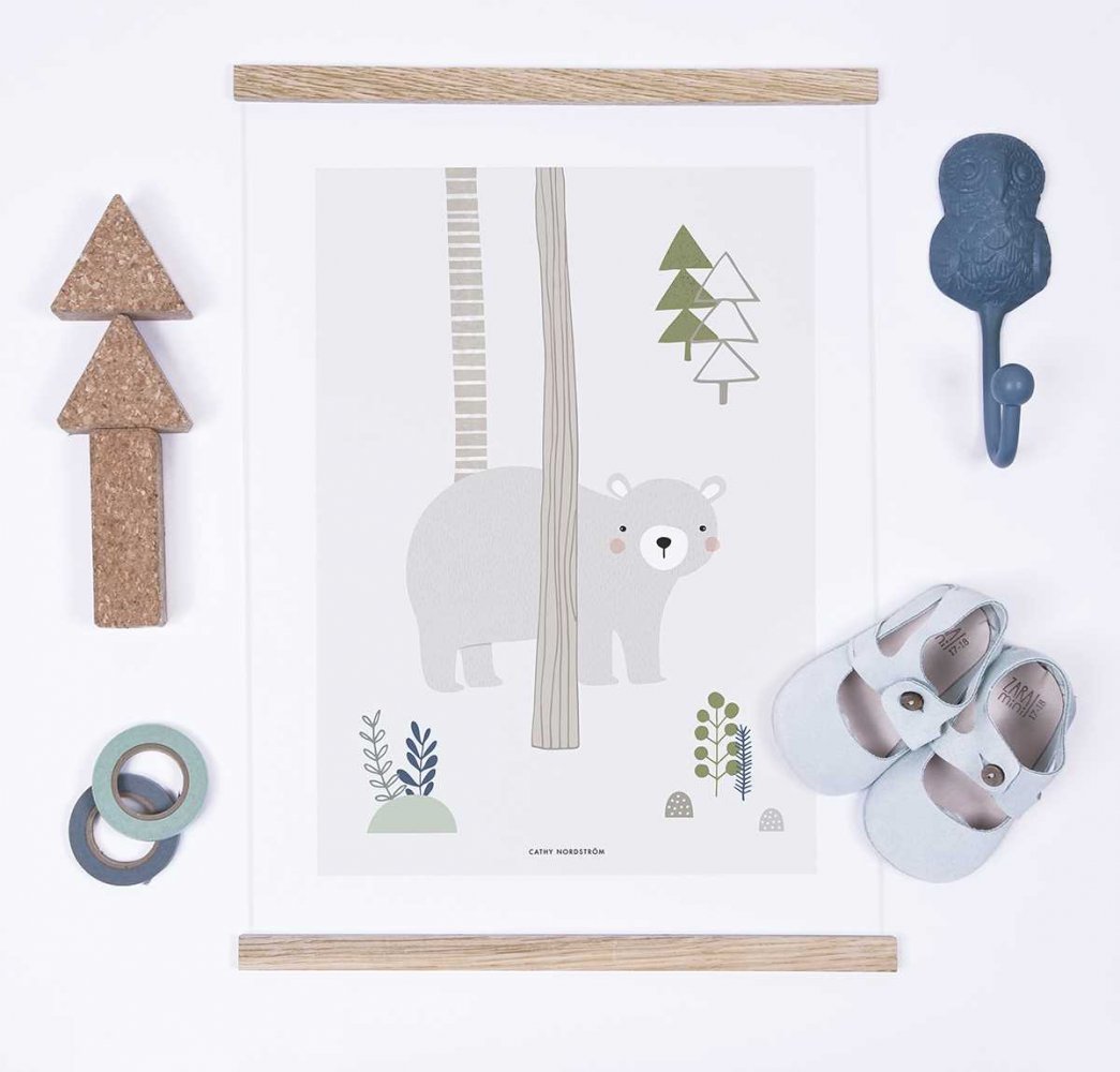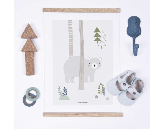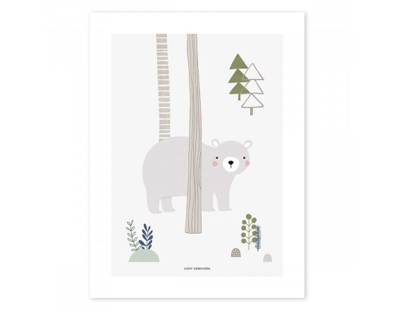Affisch från LilipinsoElegant tavla med fin björn i naturen att dekorera barnrummet med. En väggdekoration med skandinavisk prägel som både kan hängas på väggen eller så på en hylla och bidra till stämningen.