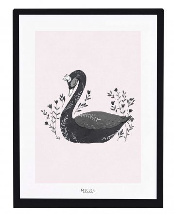 Affisch från LilipinsoElegant tavla på fin svart svan på rosa bakgrund att dekorera barnrummet med. En väggdekoration som både kan hängas på väggen eller stå på en hylla och bidra till stämningen.