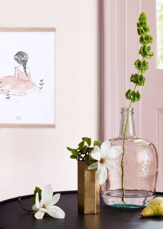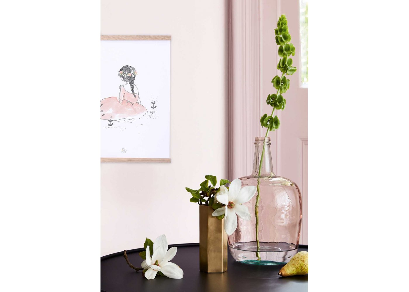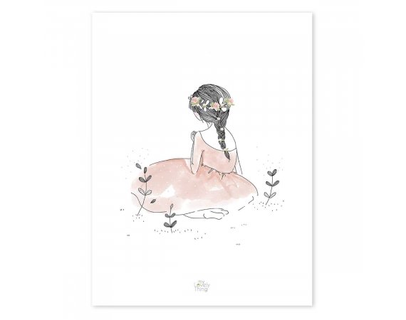 Affisch från LilipinsoSnygg siluett av en flicka i rosa klänning och blommor i håret - perfekt att dekorera barnrummet med.