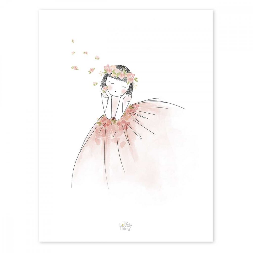 Affisch från LilipinsoSnygg och romantisk affisch på en dagdrömmande flicka i rosa klänning och blommor i håret - perfekt att dekorera barnrummet med.