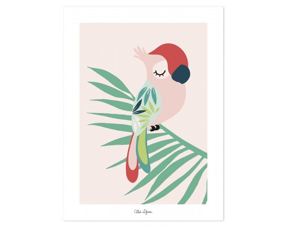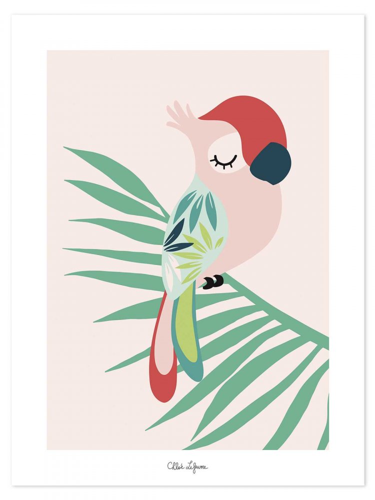 Affisch från LilipinsoFin papegoja i snygga färger att dekorera barnrummet med. En väggdekoration som både kan hängas på väggen eller stå på en hylla och bidra till stämningen.
