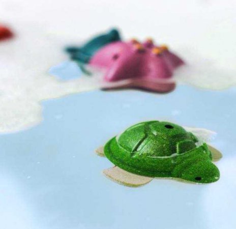 Fyra badleksaksdjur från PlanToysVattenlek är alltid populärt och alltid roligare när man har något att leka och plaska med.