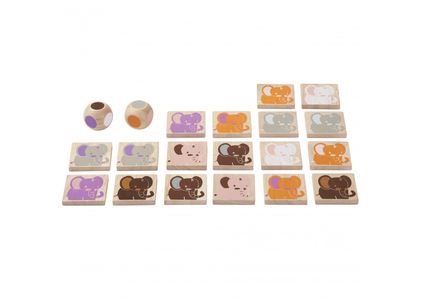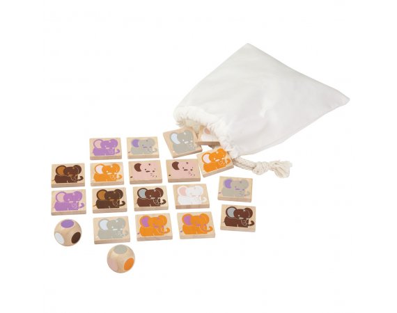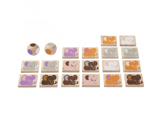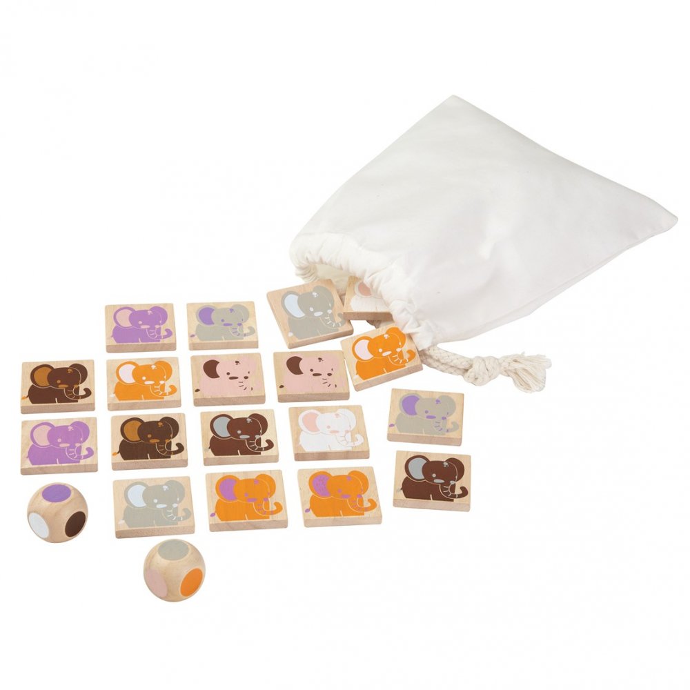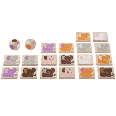 Hitta elefanten med samma färg som din tärning visar. Den som har flest set med likadana elefanter har vunnit spelet.