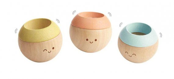 PlanToys-kulorna är runda i botten och kan gunga och underhålla.