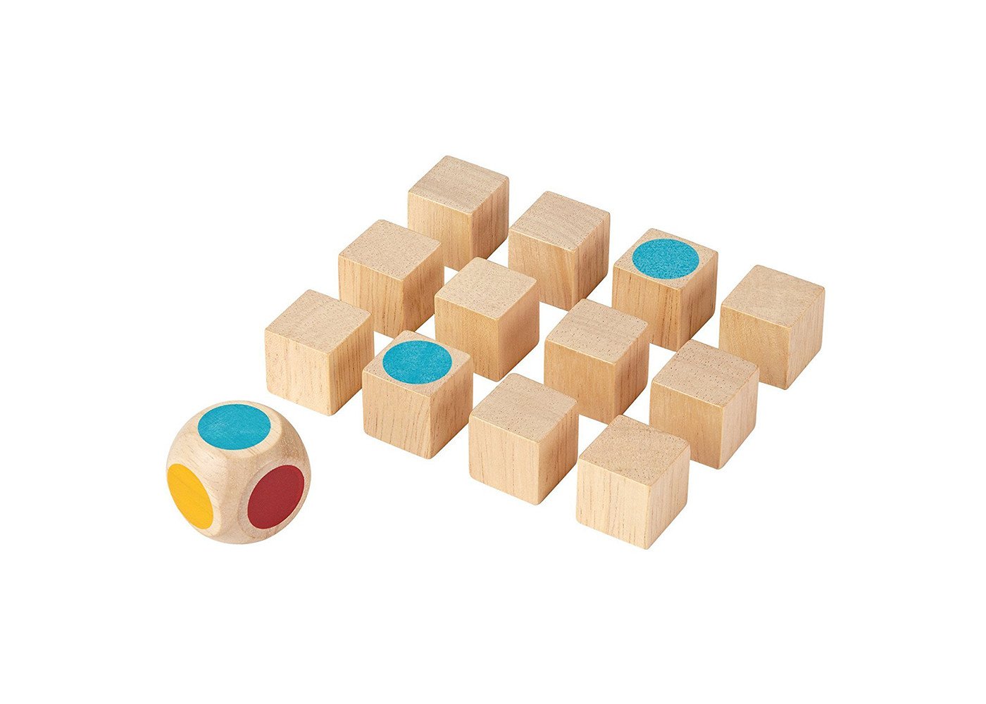 Eftersom tärningarna har en viss storlek är de lätta att hålla iför små barn.