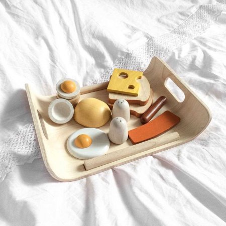 Frukostbricka från PlanToysHärlig frukostmeny som man kan servera på sängen när man vill mysa till det på helgen.