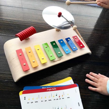 Miniorkester från PlanToysRoligt litet orkesterset bestående av en xylofon, cymbal och guiro. Ett roligt litet set som kan bringa glädje när man ska uppträda för mamma och pappa. Den lilla guiron är ett roligt litet instrument som nästan liknar en brödlimpa. I setet ingår även 3 notblad.