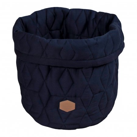 Vacker quiltad förvaringskorg från Filibabba, MörkblåKorgen har en fin läderetikett som ger den ett exklusivt utseende.
