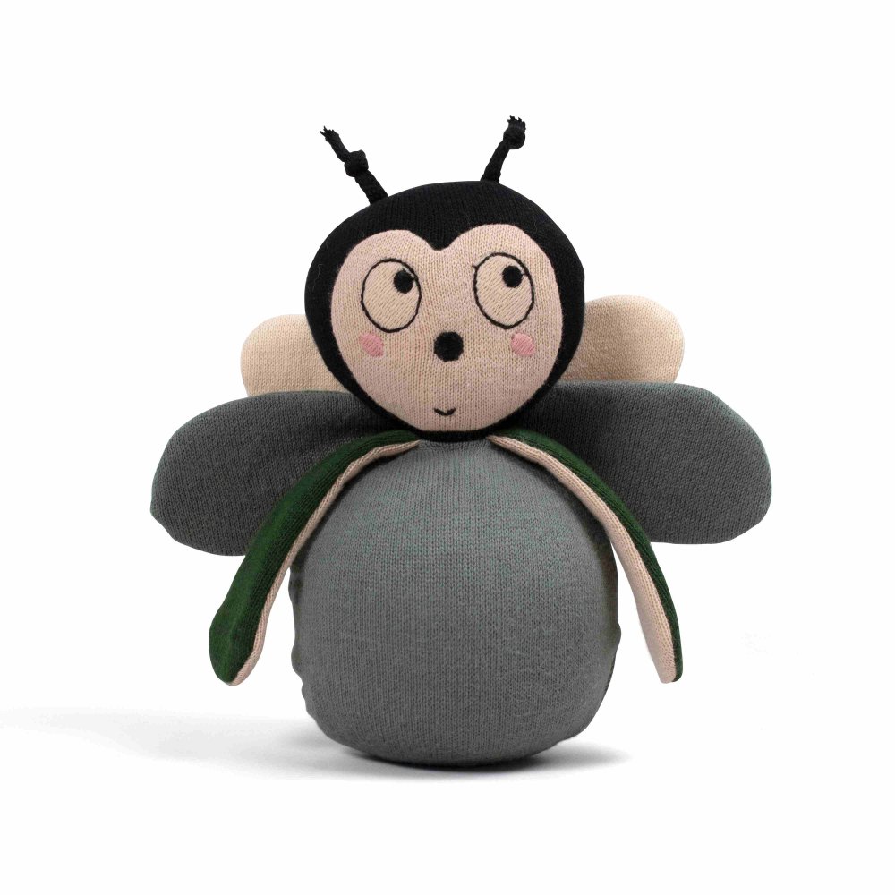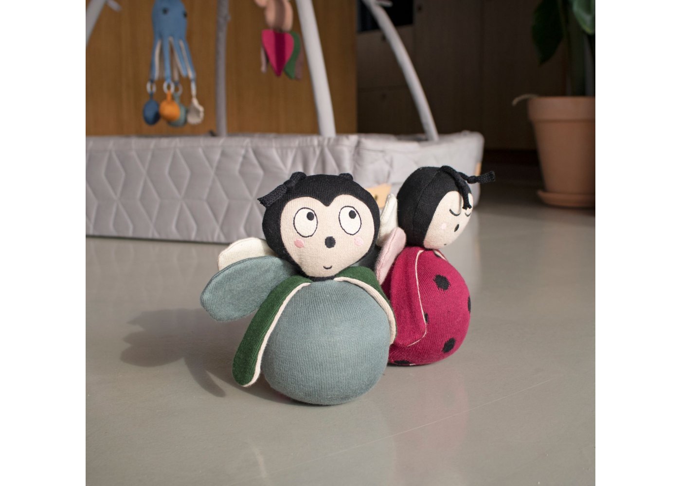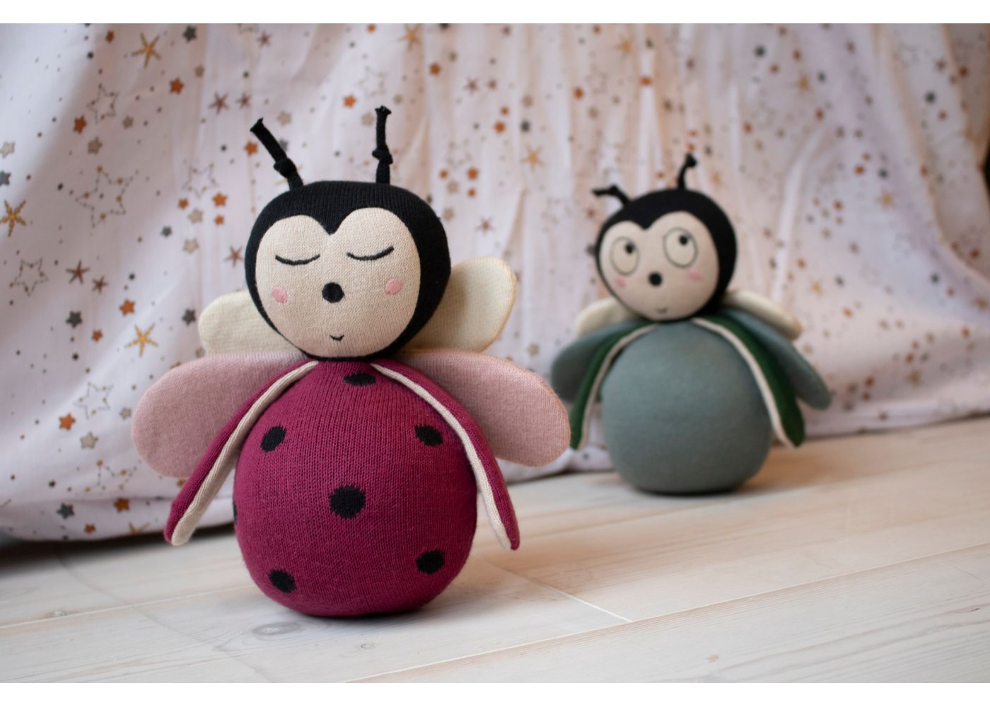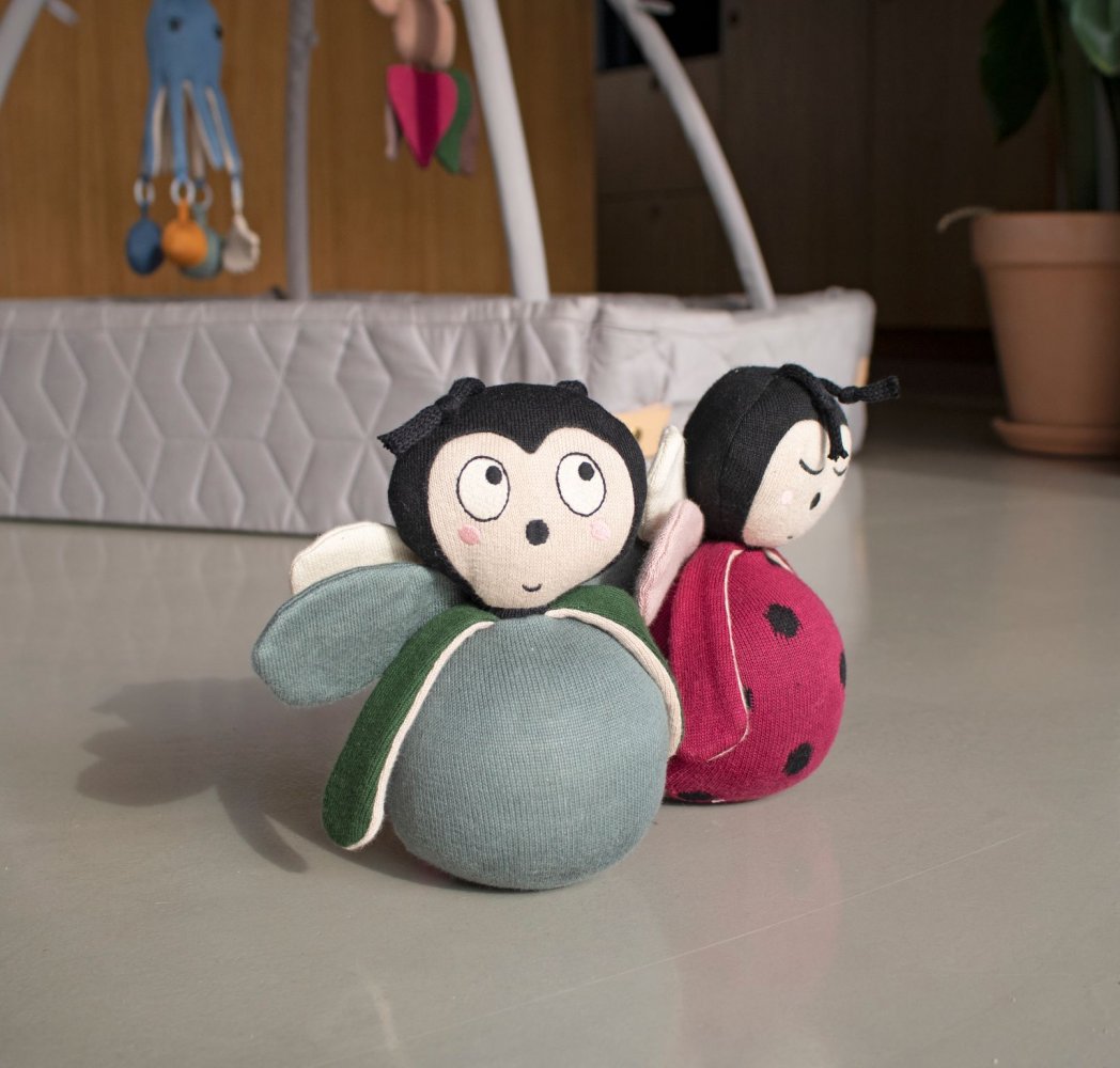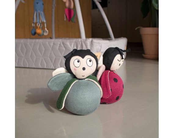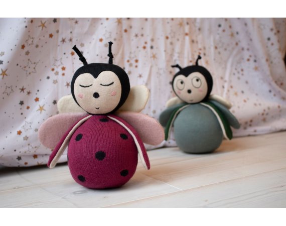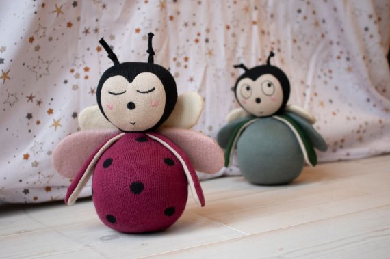 Balder är en söt handgjord insekt i stickat som alla barn kommer att älska.Nyckelpigans kropp har en inbyggd tippfunktion som får den att stiga upp igen varje gång du puffar till den. Nallebjörnen har en klocka i magen, som ger trevliga ljud. Det är därför extra kul att välta den för en liten pojke eller flicka.
