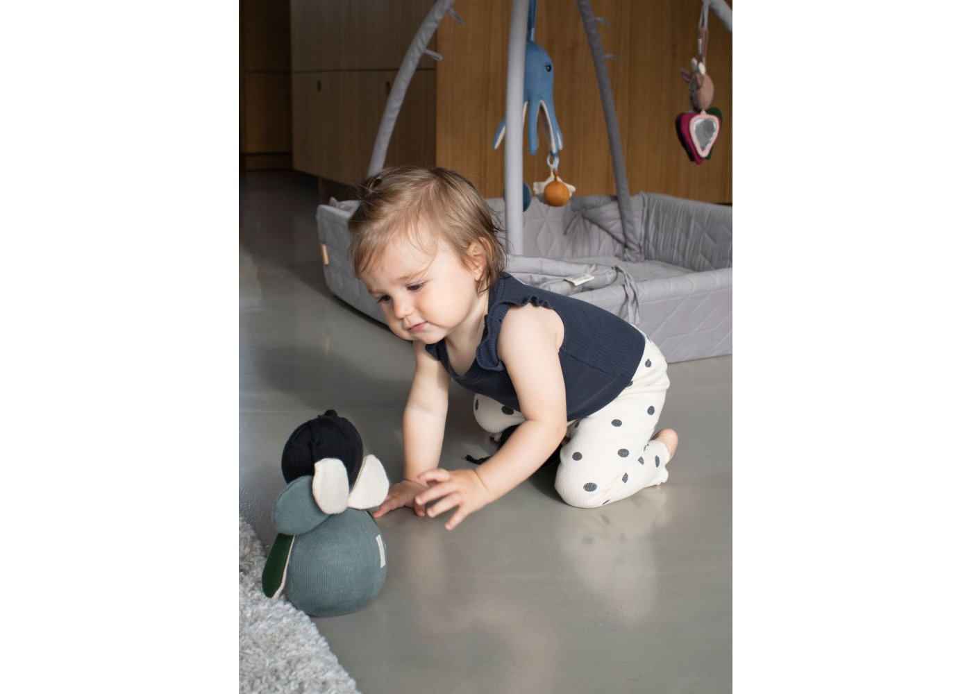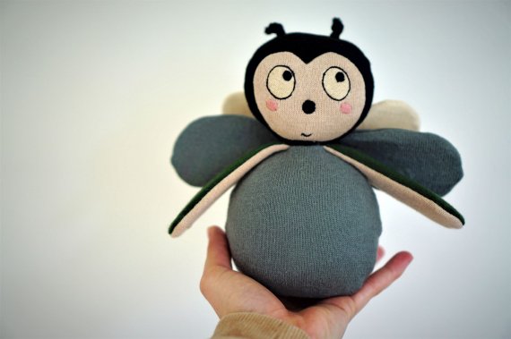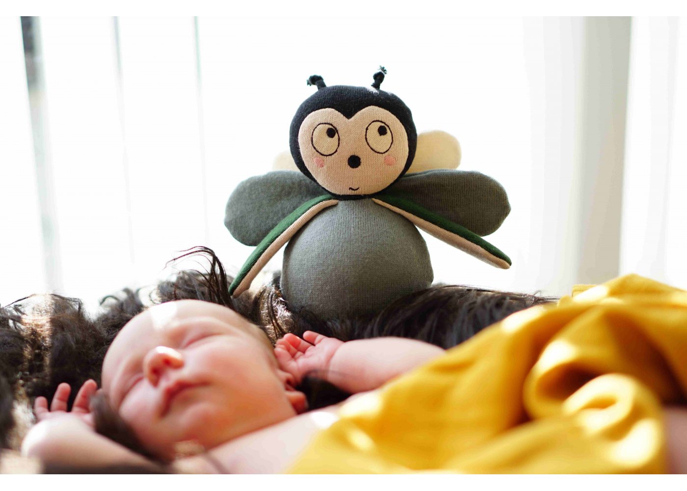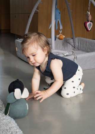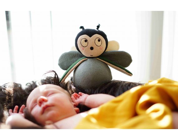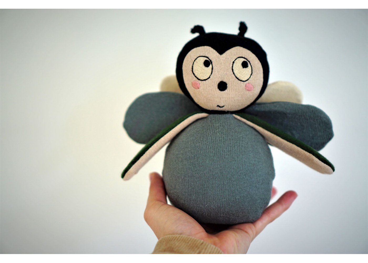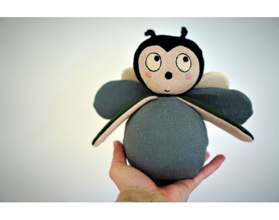 Balder är en söt handgjord insekt i stickat som alla barn kommer att älska.Nyckelpigans kropp har en inbyggd tippfunktion som får den att stiga upp igen varje gång du puffar till den. Nallebjörnen har en klocka i magen, som ger trevliga ljud. Det är därför extra kul att välta den för en liten pojke eller flicka.
