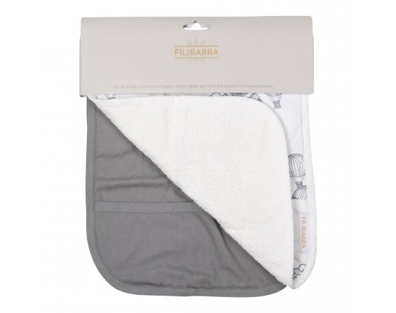 Lång GOTS-certifierad haklapp från Filibabba, 2 st.Fin haklapp med extra längd och spillficka i botten som en extra finess.