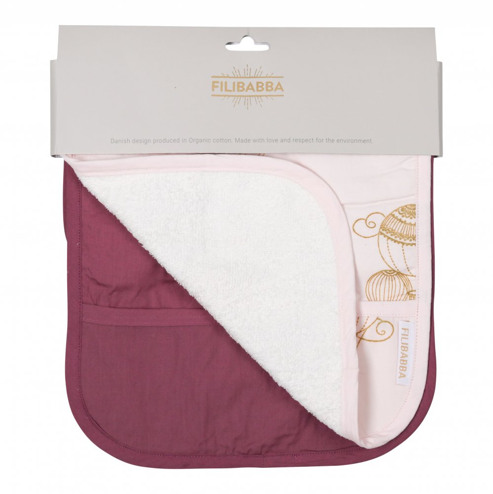 Lång GOTS-certifierad haklapp från Filibabba, 2 st.Fin haklapp med extra längd och spillficka i botten som en extra finess.
