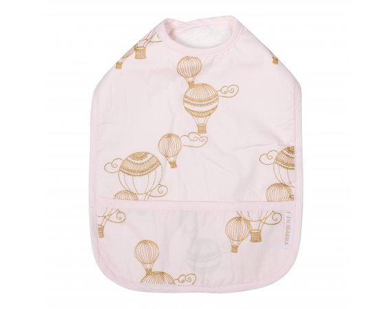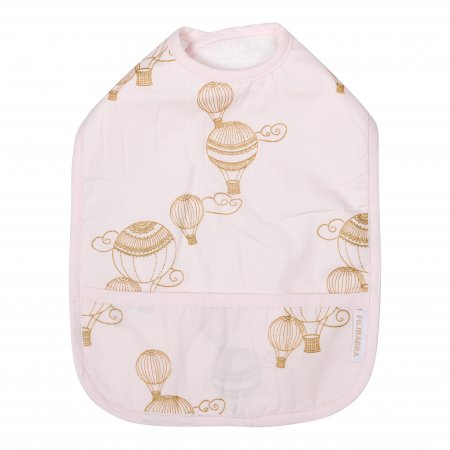 Haklappen har dubbel beläggning, en vattenavvisande egenskap som håller barnets kläder torra och rena.