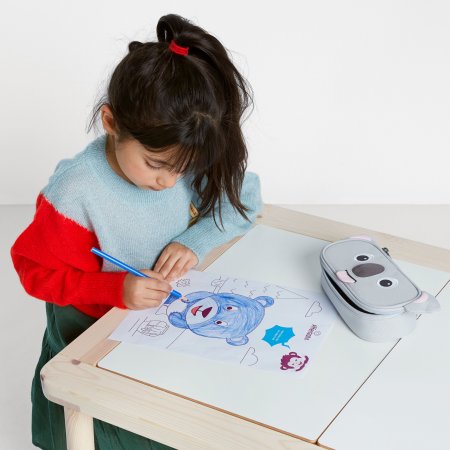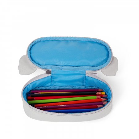 Pennfodralet är ljusblått inuti och stängs med en dragkedja som går nästan hela vägen runt. Den har ett stort utrymme med plats för både pennor, suddgummi och många andra roliga små saker. Dra i koalans tunga och en fin namnlapp visas!