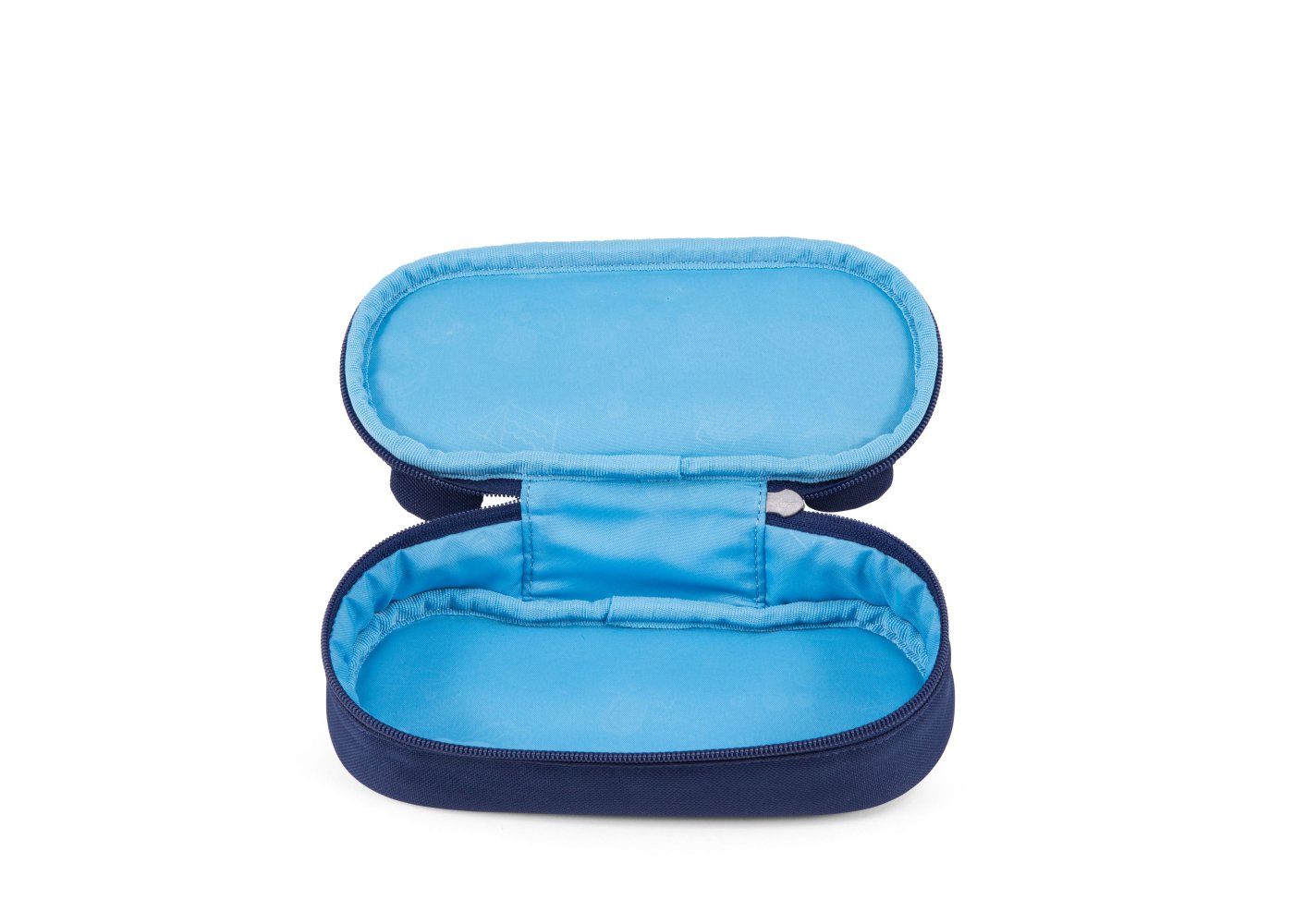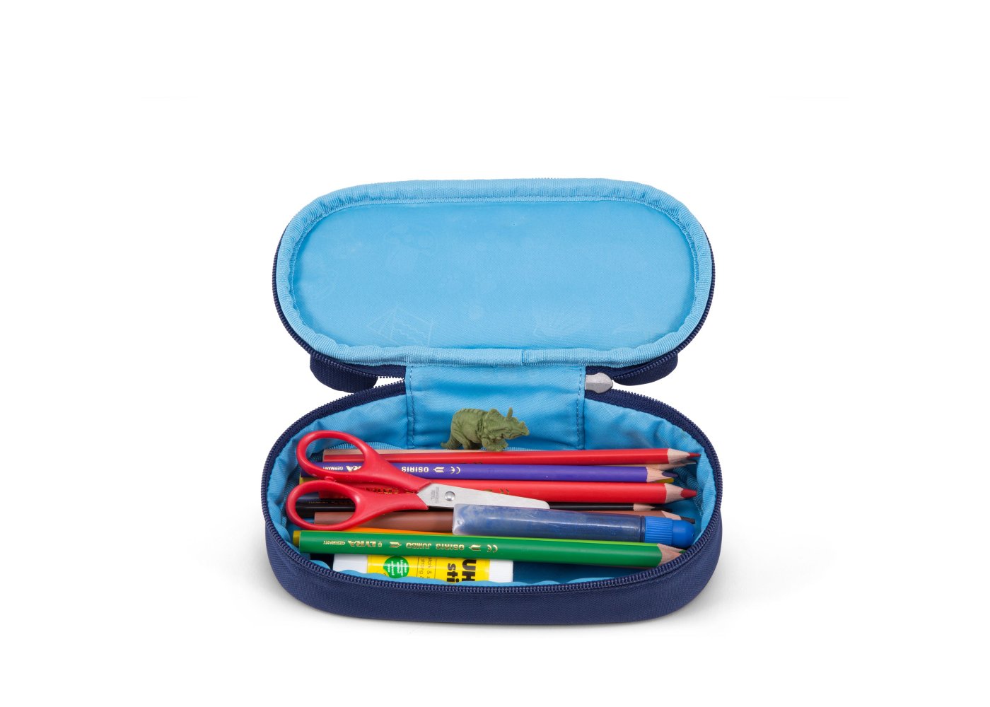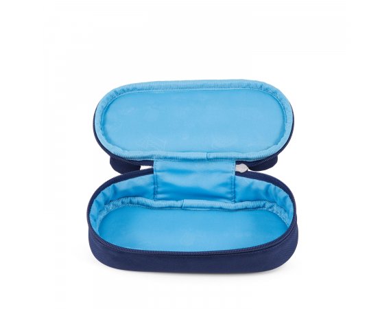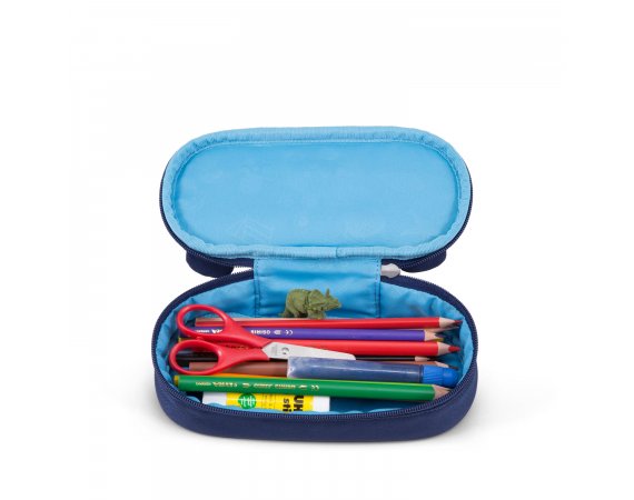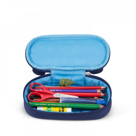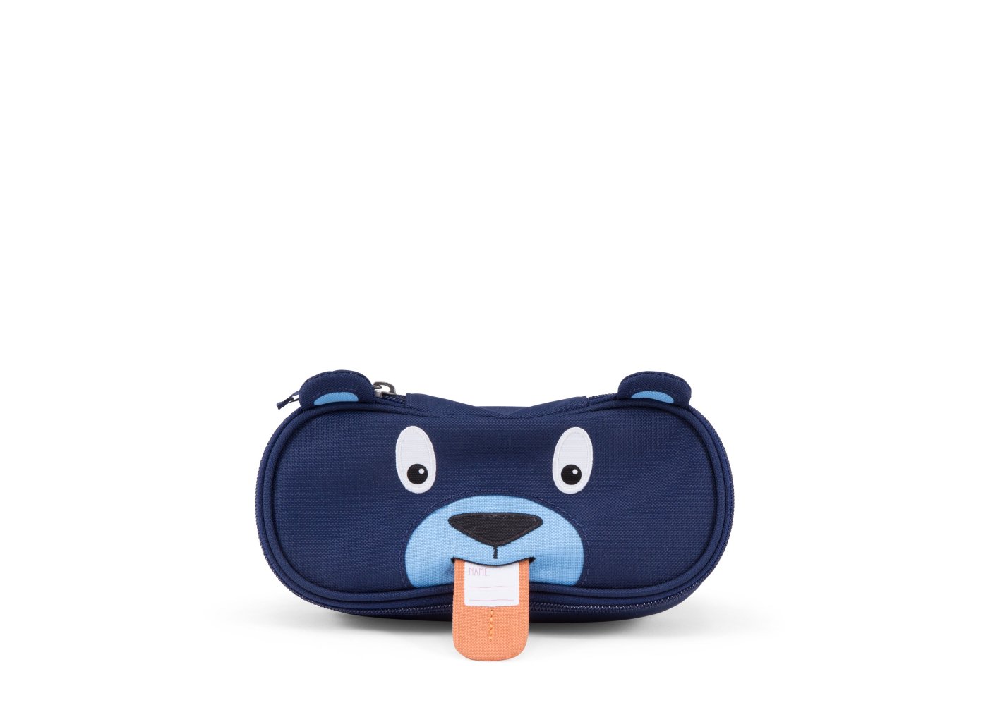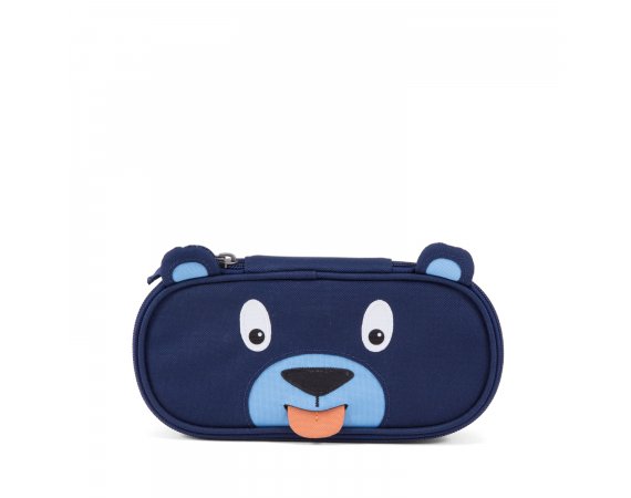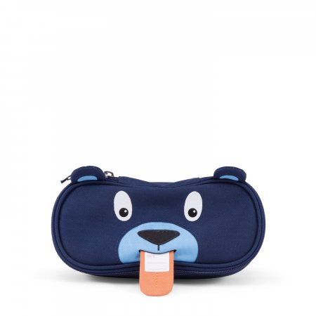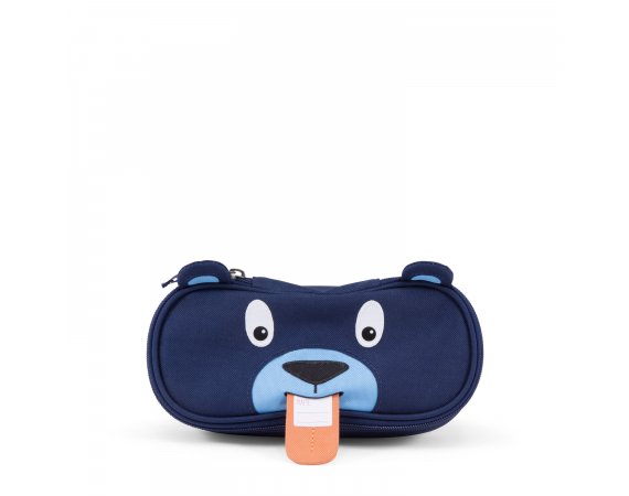 Pennfodralet är ljusblått inuti och stängs med en dragkedja som går nästan hela vägen runt. Den har ett stort utrymme med plats för både pennor, suddgummi och många andra roliga små saker. Dra i björnens tunga och en fin namnlapp visas!