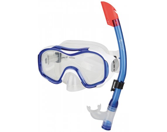 Tätt sittande silikonmask runt ett klart glas som säkerställer att ögonen är väl skyddade från vatten, klorvatten och saltvatten. Snorkelns munstycke är också i mjuk silikon, så den är bekväm att bära. Toppen av snorkeln har luft/spår som säkerställer bekväm andning.