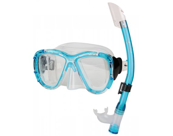 Tätt sittande silikonmask runt ett klart glas som säkerställer att ögonen är väl skyddade från vatten, klorvatten och saltvatten. Snorkelns munstycke är också i mjuk silikon, så den är bekväm att bära. Toppen av snorkeln har luft/spår som säkerställer bekväm andning.
