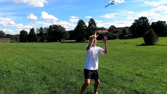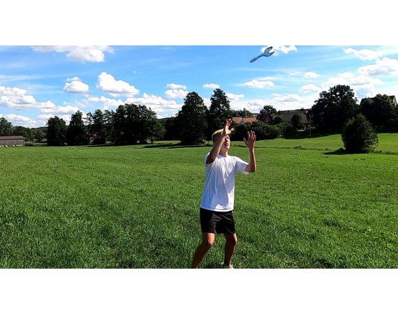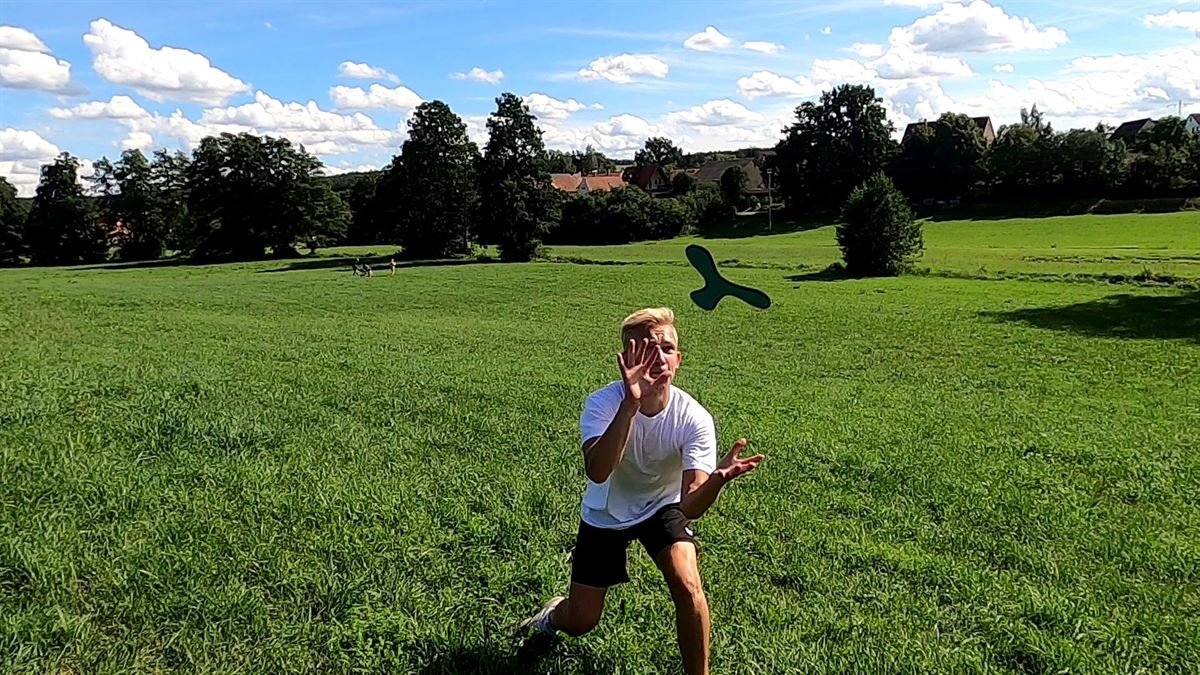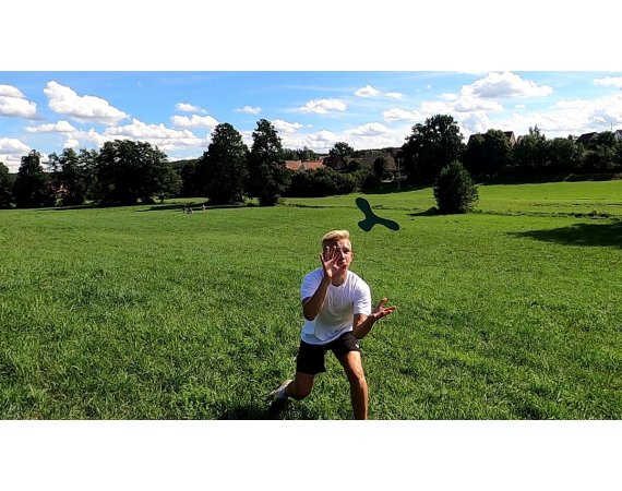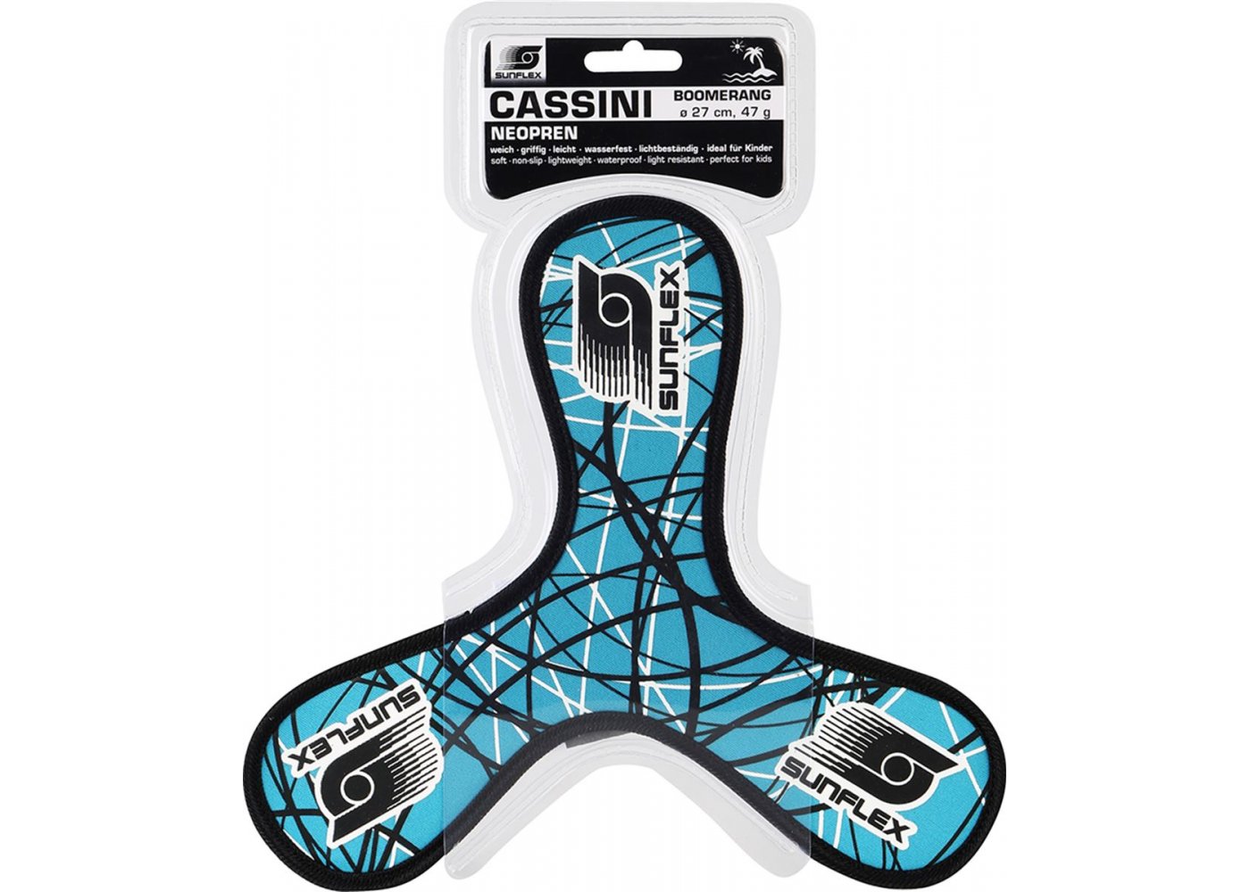 Boomerangen tar inte mycket plats i bagaget och är ett roligt spel att ta med till poolen eller stranden. Den tål vatten och är behaglig att greppa.