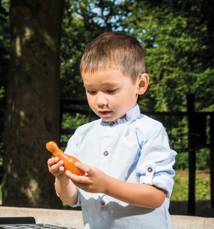 Samtidigt är det leksaker som stärker barnets finmotoriska färdigheter. Korvarna måste vändas på grillen med tången och biffarna vändas med palettkniven.
