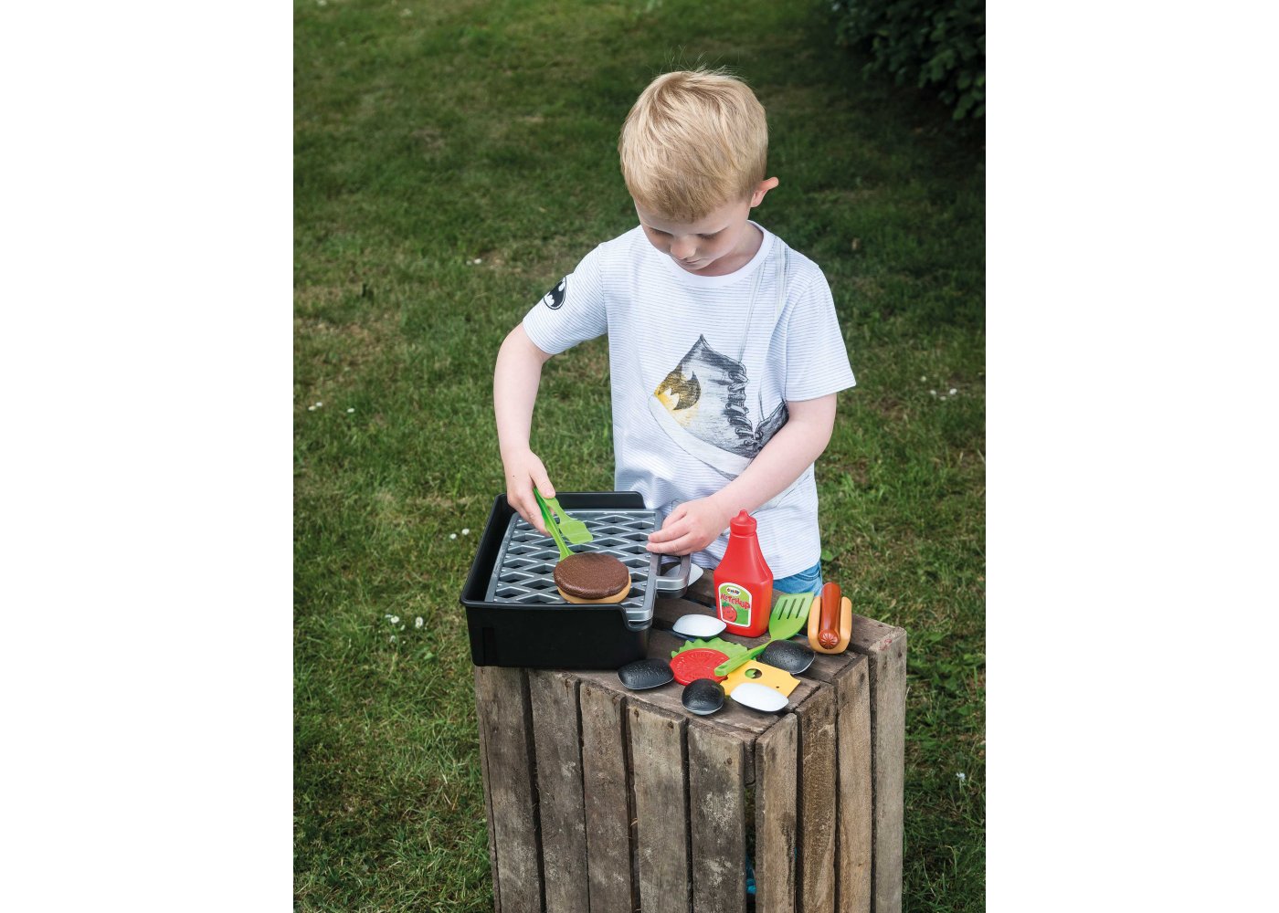 De flesta barn älskar Mc Donalds och kommer därför att älska att göra hamburgare eller annan grillmat. Med det här grillsetet kommer det att finnas gott om möjligheter att leka burgerbar eller servera grillmat till vänner.