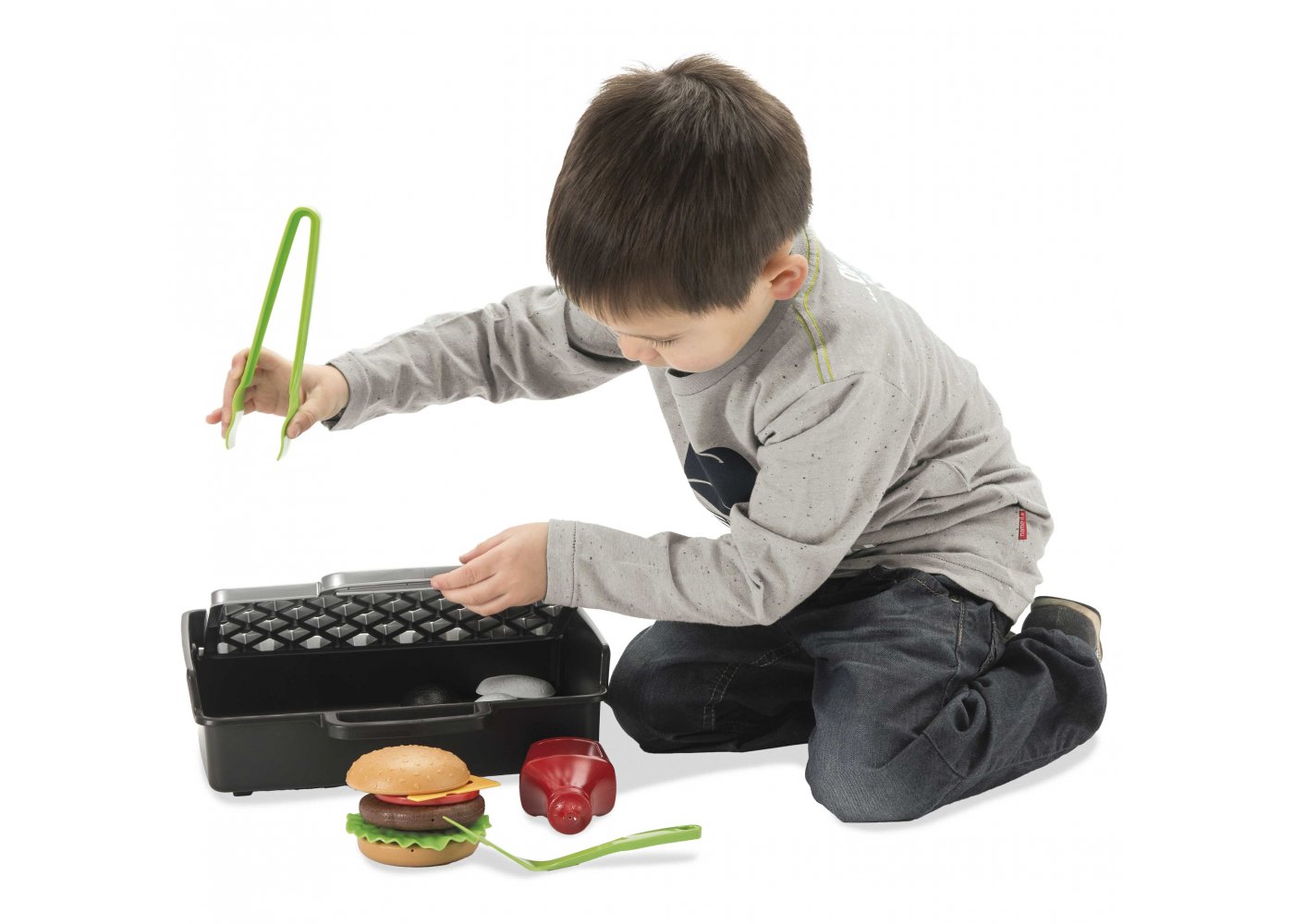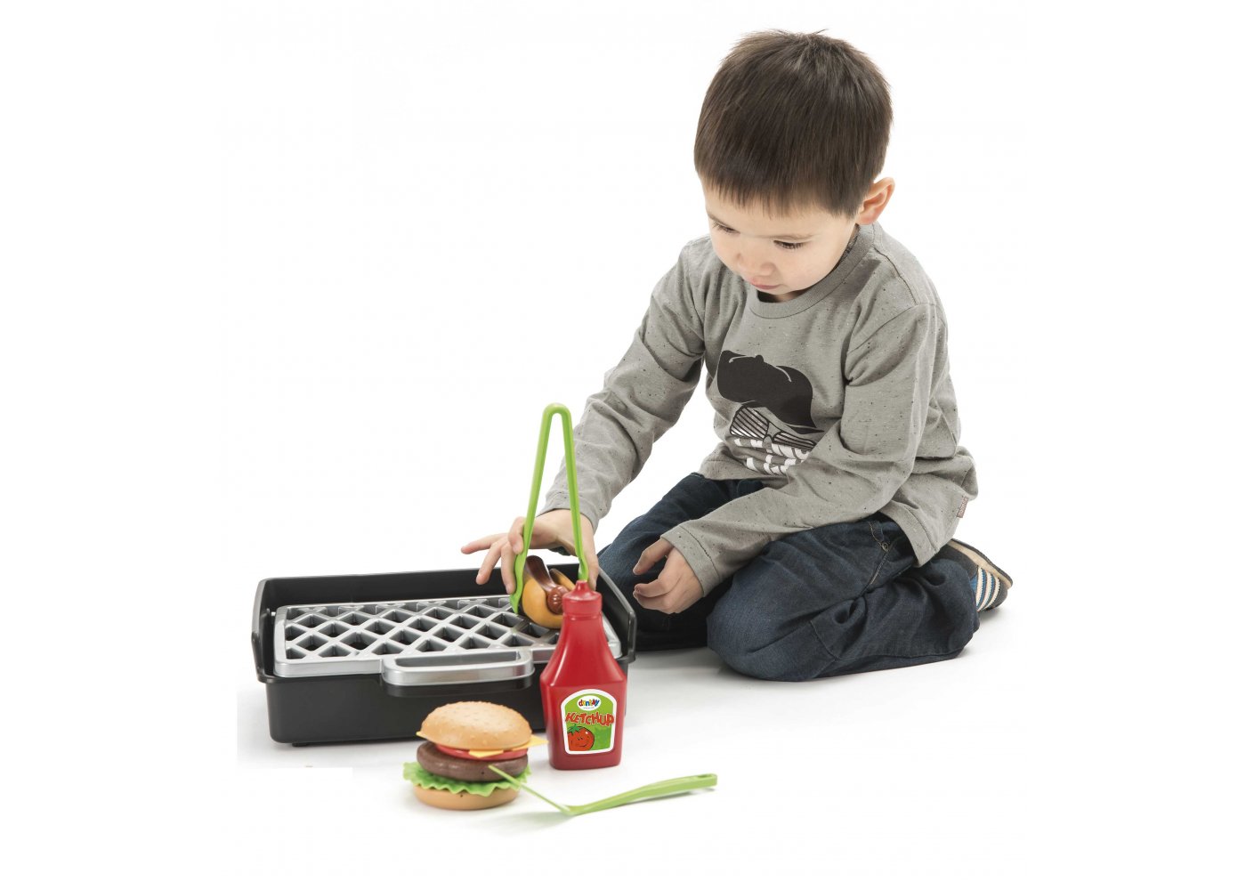 Samtidigt är det leksaker som stärker barnets finmotoriska färdigheter. Korv och hamburgare ska nämligen båda vändas på grillen.