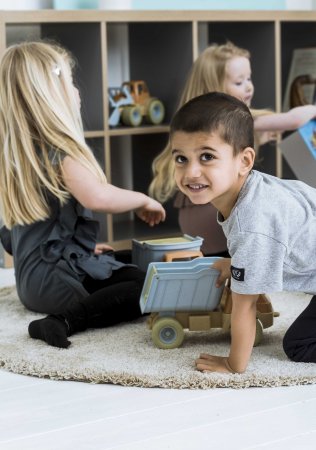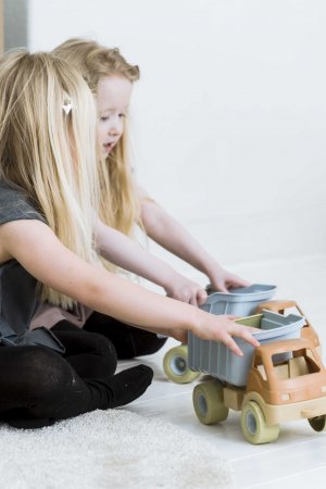En lastbil kan användas för nästan allt. Den kan köra grus eller sand men kan även köra små bilar och gårdsdjur. En rolig leksak där fantasin verkligen kan gå loss.