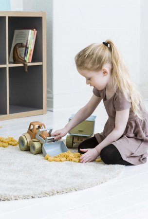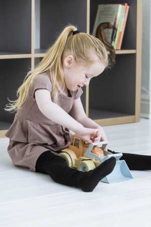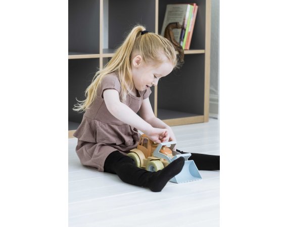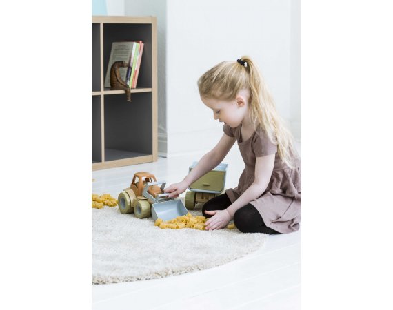 En traktor med skopa kan användas för nästan allt. Det kan flytta sand och grus, och transportera betor, men den kan också användas för många andra saker. En rolig leksak där fantasin verkligen kan gå loss.