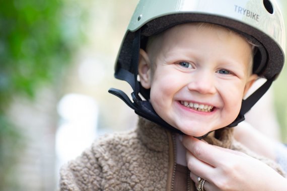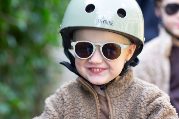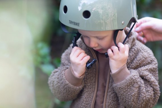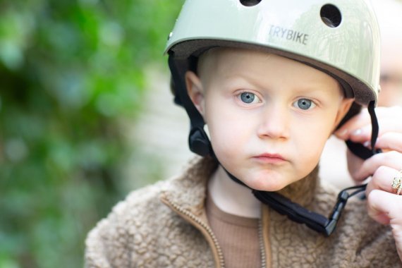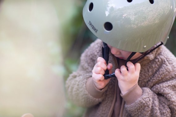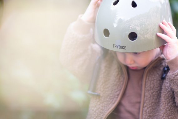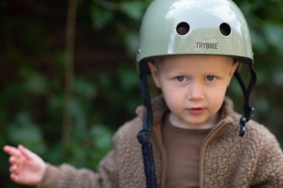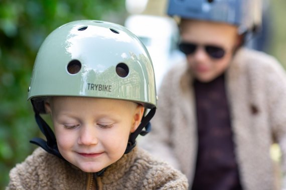 Smart dammigt grön cykelhjälm i retrolook från Trybike, storlek S.
