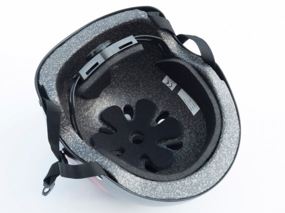 Cykelhjälmen har en justerbar hakrem och skruvspänne i nacken, så den kan justeras individuellt.