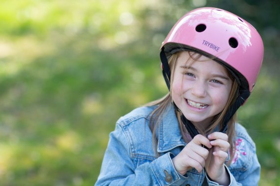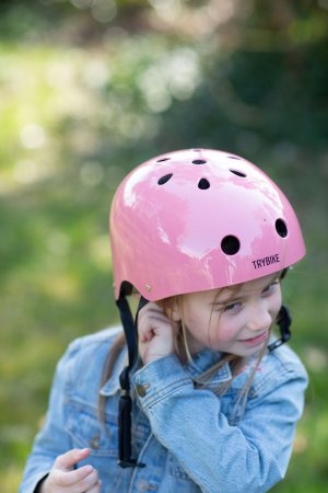 Smart rosa cykelhjälm i retrolook från Trybike, storlek M.