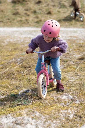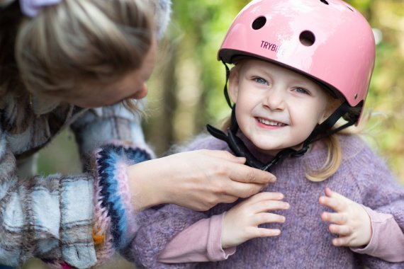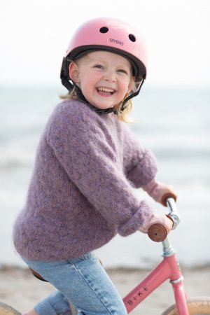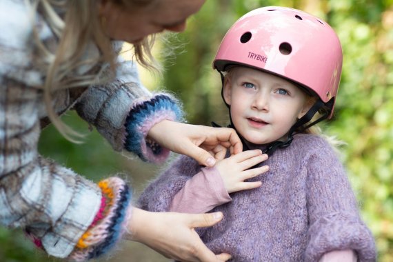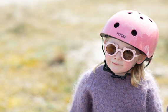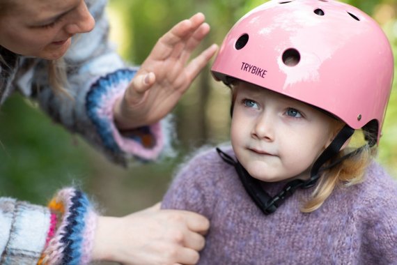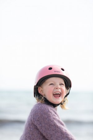Smart rosa cykelhjälm i retrolook från Trybike, storlek XS.