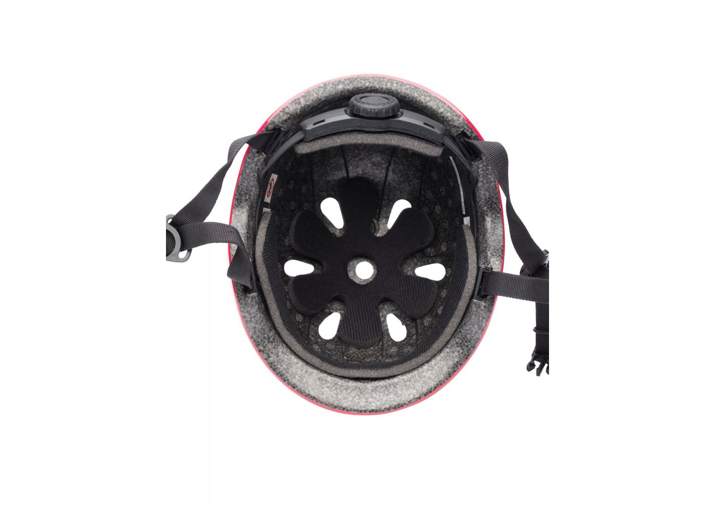 Cykelhjälmen har en justerbar hakrem och skruvspänne i nacken, så den kan justeras individuellt.