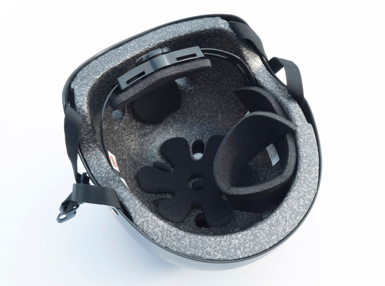 Cykelhjälmen har en justerbar hakrem och skruvspänne i nacken, så den kan justeras individuellt.