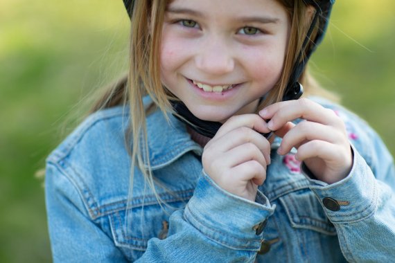 Cykelhjälmen har en justerbar hakrem och skruvspänne i nacken, så den kan justeras individuellt.