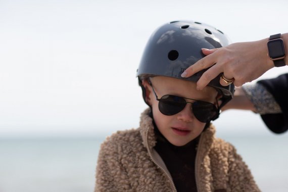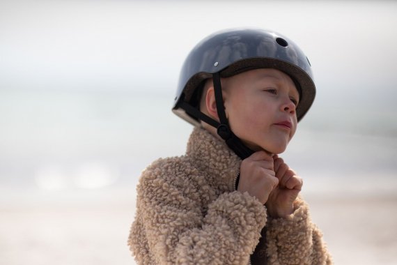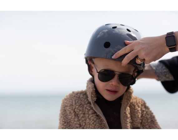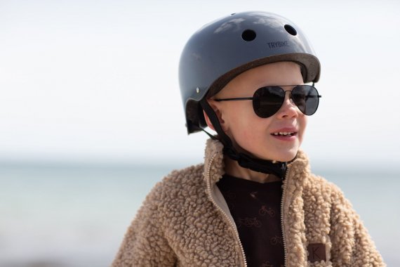 Smart antracitgrå cykelhjälm i retrolook från Trybike, storlek M.