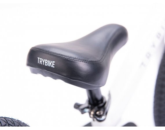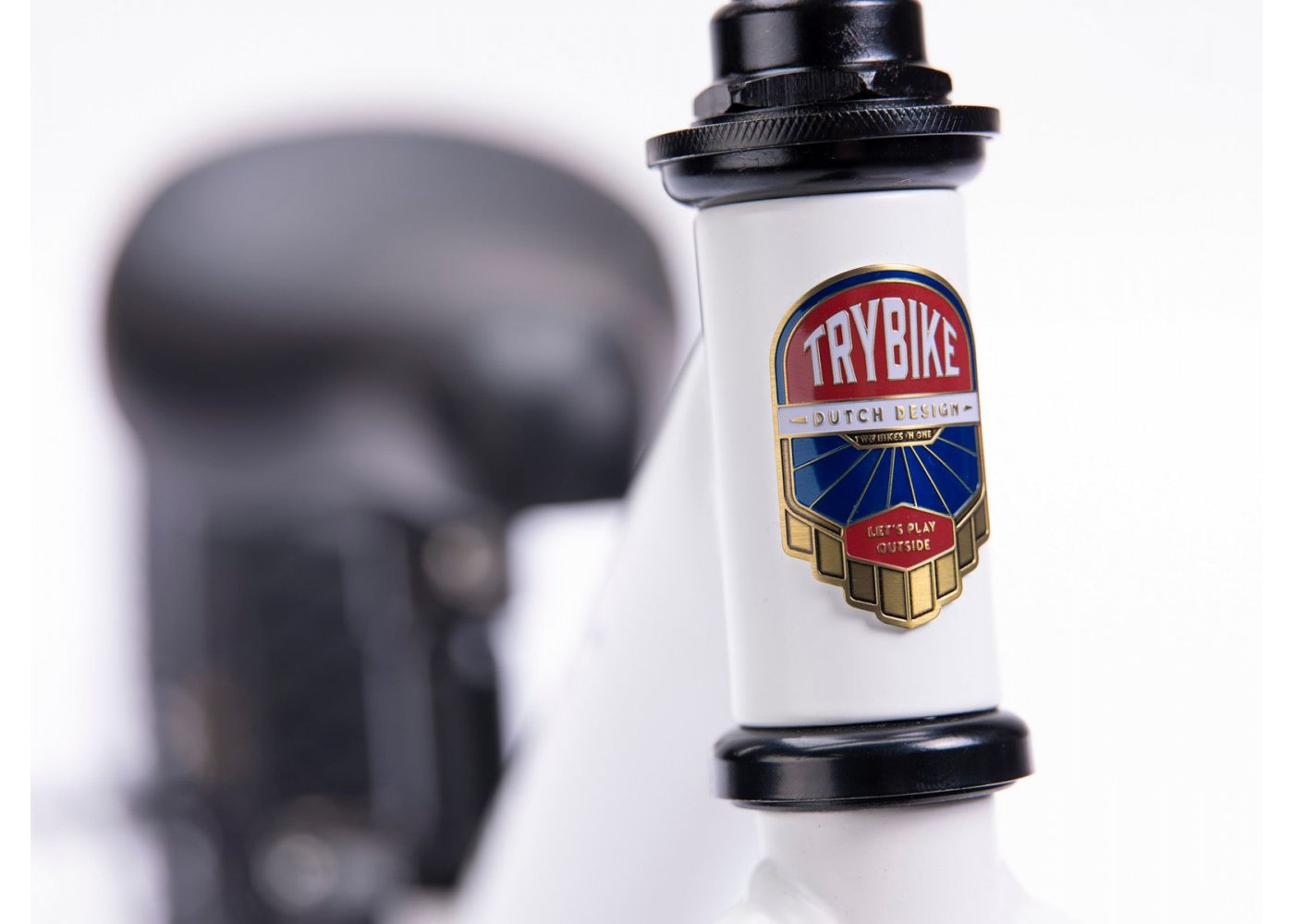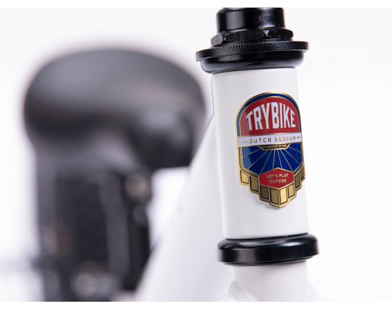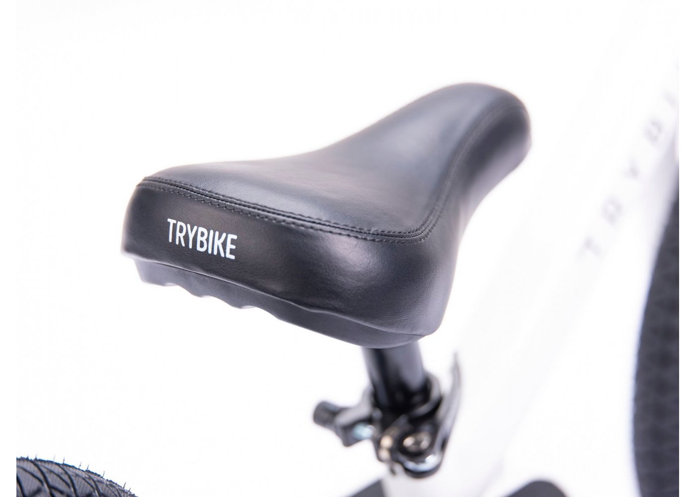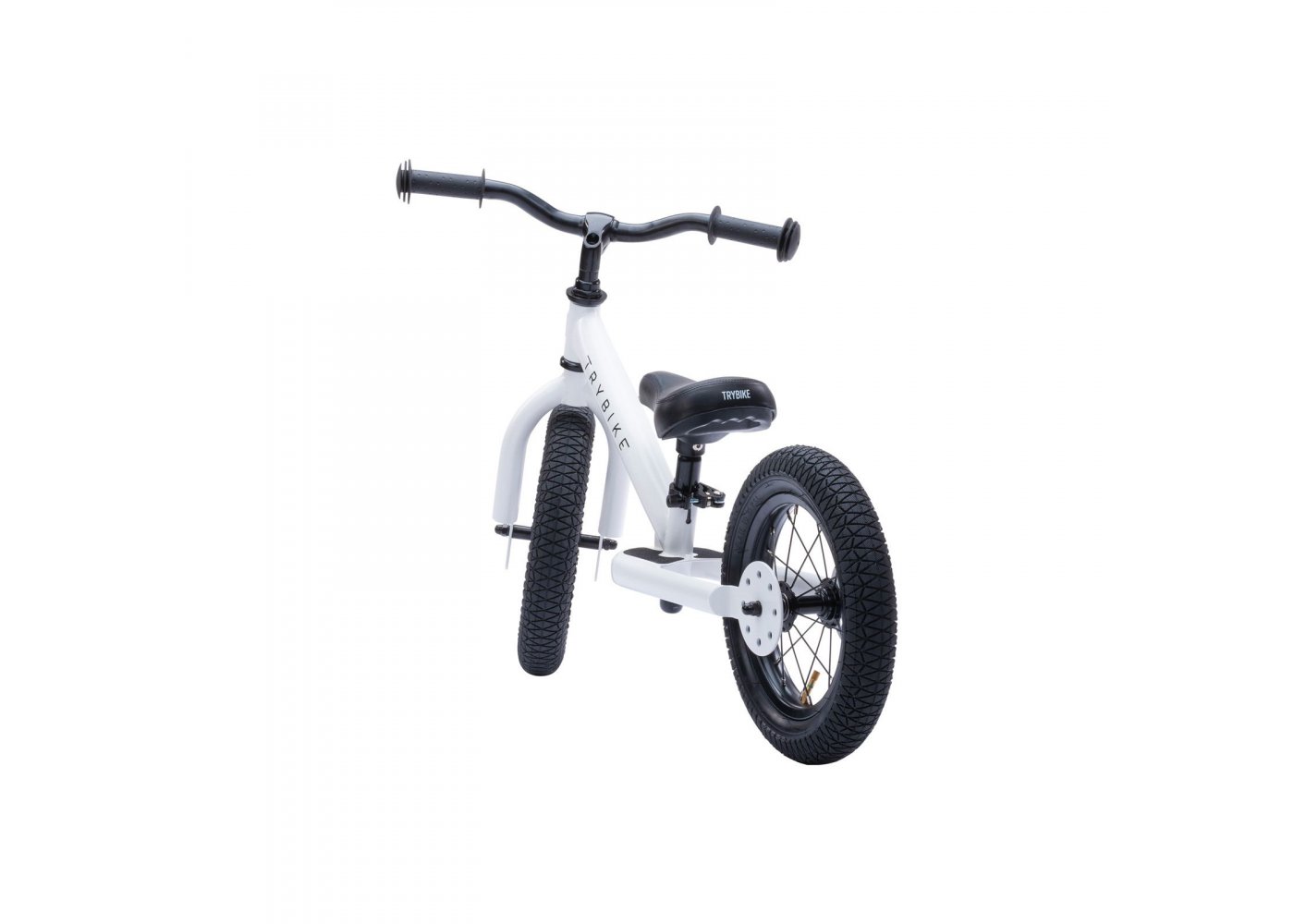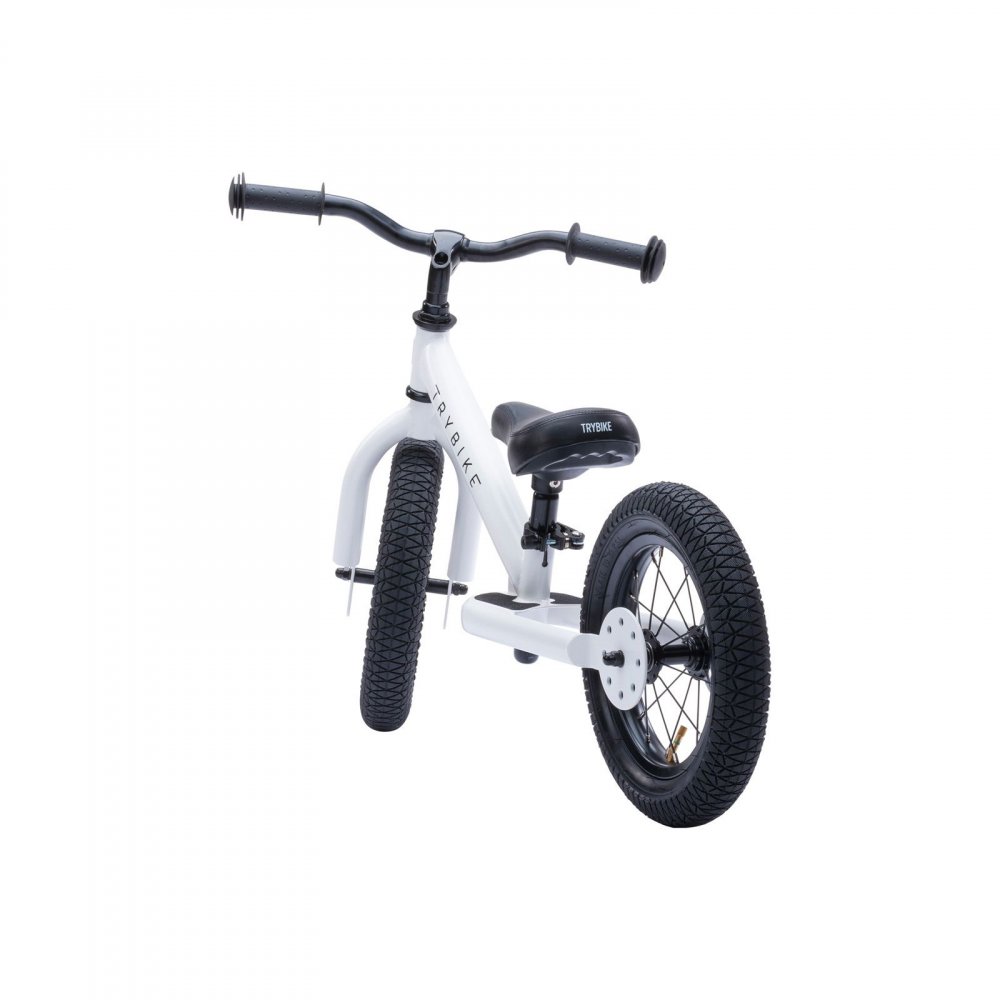 Tuff balanscykel från Trybike i vitt med svarta hjul.