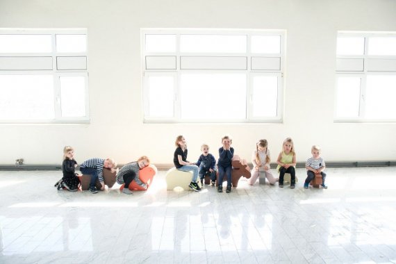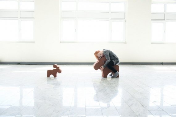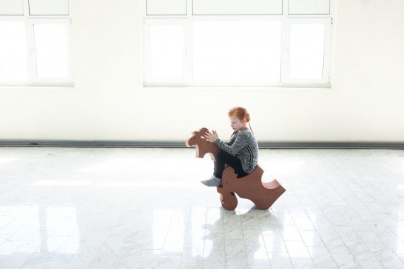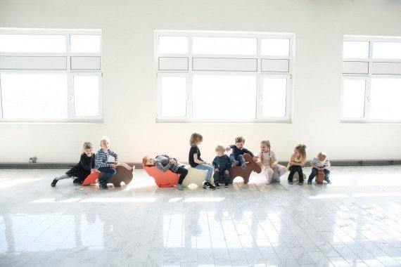 Älgen är jättekul att leka och busa med. Den är nämligen tillräckligt stor, så man kan också rida på den. Om man lägger den på sidan kan den användas som bord eller pall.