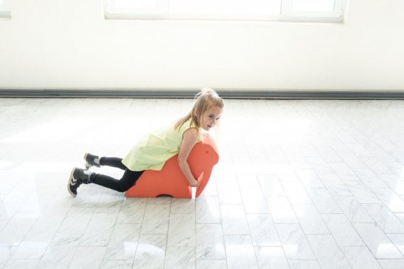 Den kommer utan tvekan bli populär i många hem och vara en del av många roliga lekar. Den är nämligen tillräckligt stor, så man kan också rida på den. Om man lägger den på sidan kan den användas som bord eller pall.