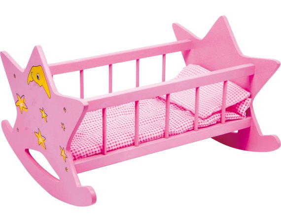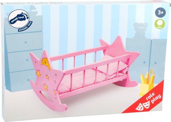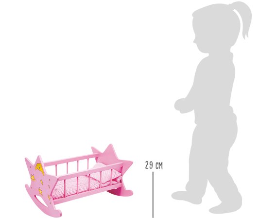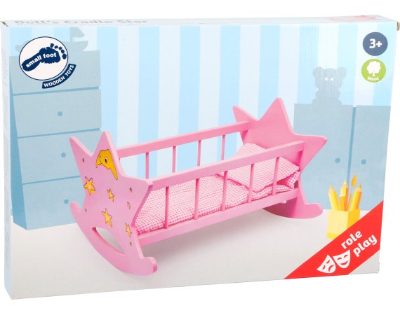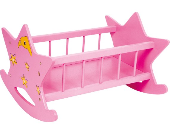 Söt vagga till dockan i stjärndesign och med måne och stjärnor på gavlarna, Rosa