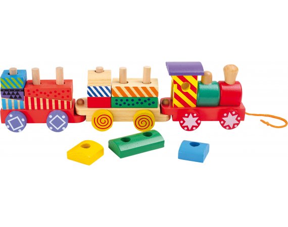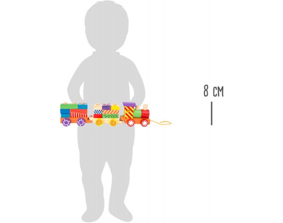 Loket och de två vagnarna kan anslutas och dras med ett snöre och följa med barnet på många äventyr.