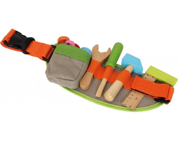 Leksaksbältet är tillverkat i starkt tyg och har ett spänne som kan justeras från 41 till 103 cm, så det passar er lilla handyman.