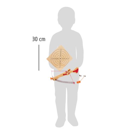 Setet består av en måltavla och två pilar. De medföljande två pilarna har en sugkopp, så setet är helt säkert att leka med.