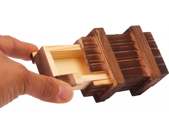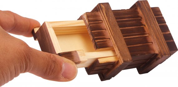 Här kan små skatter förvaras säkert och - långfingret - tappar tålamodet. Bara de som kan tricket kan öppna lådan och ta ut innehållet!
