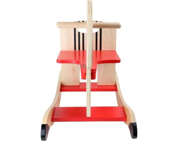 Gunghästen är utrustad med ryggstöd och har rundade ben för säkerhet.
