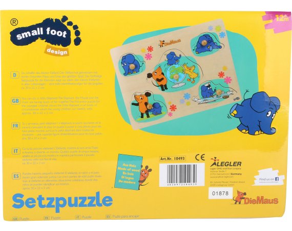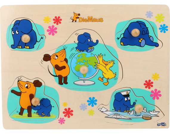 Kanske ditt barns första pussel med en söt elefant som gör konster med en mus och en anka.