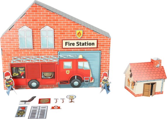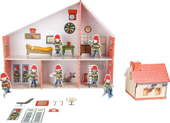 Det färgade kartongdockhuset med brandkår är en garanterad hit för äventyrliga barn!