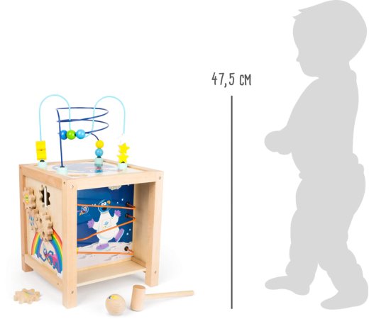 Fem sidor fulla av spänning, kul och spelAktivitetskub som har mycket att erbjuda. Varje sida stimulerar barnets motoriska färdigheter och sinnen.