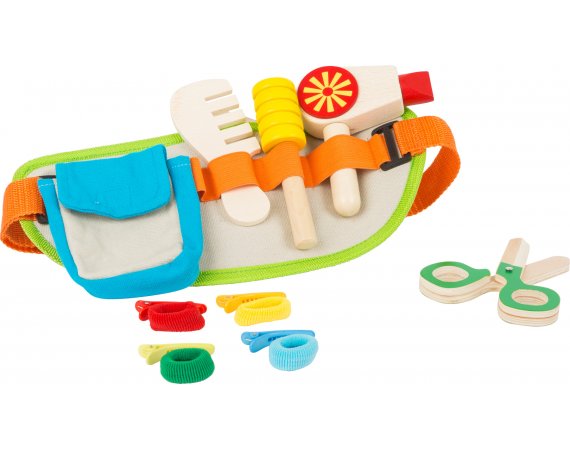 Frisörbältet sätts på och frisören är redo att klippa den första kunden.