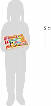 Pärlorna levereras i en trälåda med 16 fack och är sorterade och indelade efter form.